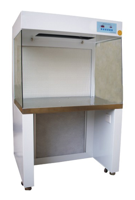 潔凈環境是在特定的空間內,潔凈空氣(進濾空氣)按設定的方向流動而形成的。以氣流方向來分,現有的凈化工作臺可分為垂直式,由內向外式以及側向式。從操作質量和對環境的影響來考慮,以垂直式較優越。由供氣濾板提供的潔凈空氣以一個特定的速度下降通過操作區,在大約操作區的中間分開,由前端空氣吸入孔和后吸氣窗吸走,在操作區下部前后部吸入的空氣混合在一起,并由鼓風機泵入后正壓區,在機器的上部,30%的氣體通過排氣濾板從頂部排出,大約70%的氣體通過供氧濾板重新進入操作區。為補充排氣口排出的空氣,同體積的空氣通過操作口從房間空氣中得到補充。這些空氣絕對不會進入操作區,只是形成一個空氣屏障。