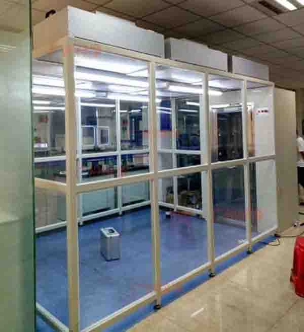 潔凈棚采用采用工業鋁型材或不銹鋼方通和鐵方通多層酸洗靜電噴塑作為框架,抗腐蝕、防銹、美觀大方。潔凈棚常用板材有冷軋鋼板(A3板)與不銹鋼板(SUS201,SUS304,SUS316等),厚度一般為0.8~1.5mm。不同的材質與尺寸配置直接影響到潔凈棚價格成本。潔凈棚與風淋室安裝檢測現場潔凈棚是為最快速方便建立的一座簡易潔凈室,潔凈棚具備多種潔凈等級及空間搭配可以根據使用需求設計制作,因此其簡便運用彈性大安裝容易且施工期短以及可移性為其主要特點。因此對于有些有局部潔凈要求的LCD生產車間來說,潔凈棚的優勢就顯現出來了。