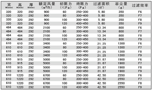 無隔板中效過濾器技術參數-用戶選購指南